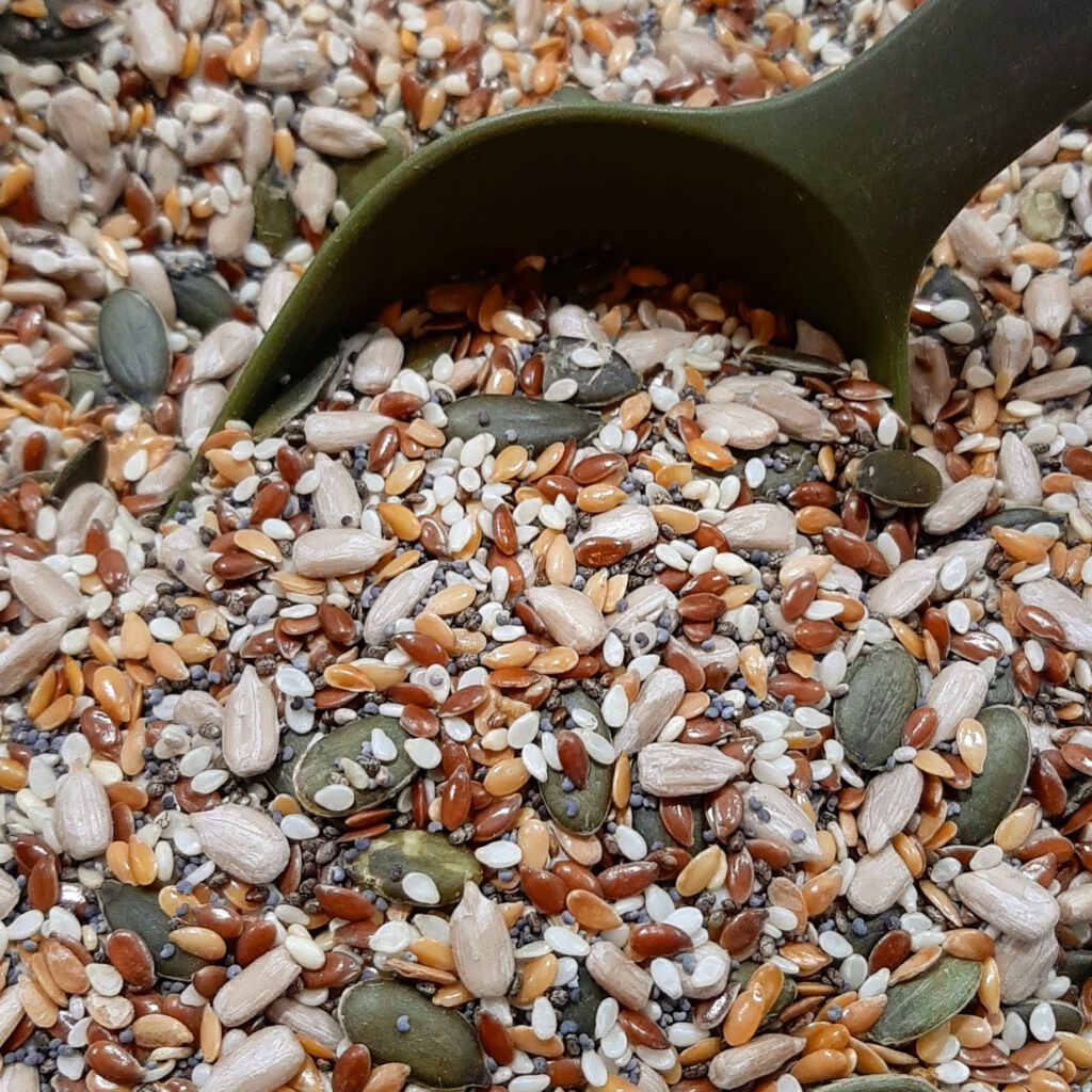 15 maart 2022 –> Soms wil je wat extra`s toevoegen aan je brood. Nu heb ik een overheerlijke zaden- en pitten mix gemaakt. Hierin zitten zonnebloempitten, pompoenpitten, chiazaad, maanzaad, rode en witte lijnzaad en sesamzaad. Deze verwerk ik zowel in het deeg als bovenop het brood als decoratie en lekkere crunch! Door de mix eerst te roosteren krijgt het een nog lekkerdere en diepe smaak….